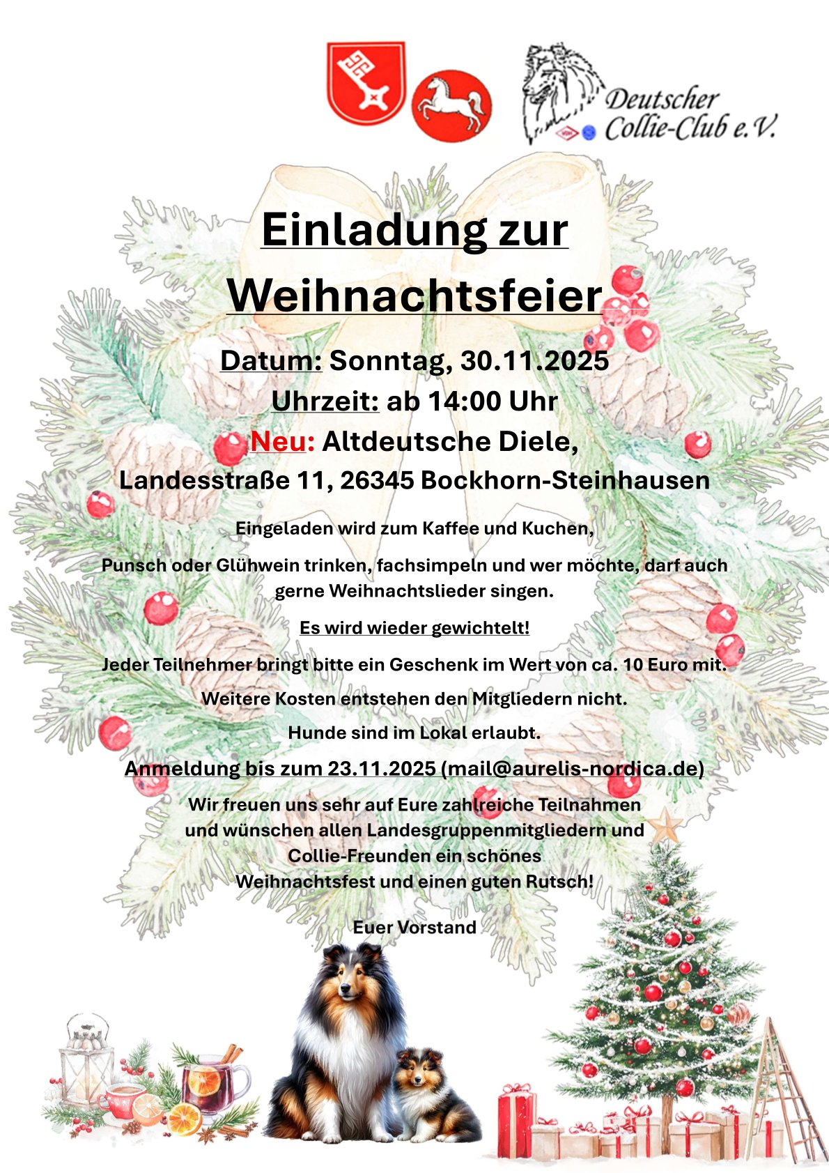 Aufgrund von organisatorischen Umständen ändert sich die Location für die Weihnachtsfeier unserer Landesgruppe am 30.11.2025 ab 14 Uhr.